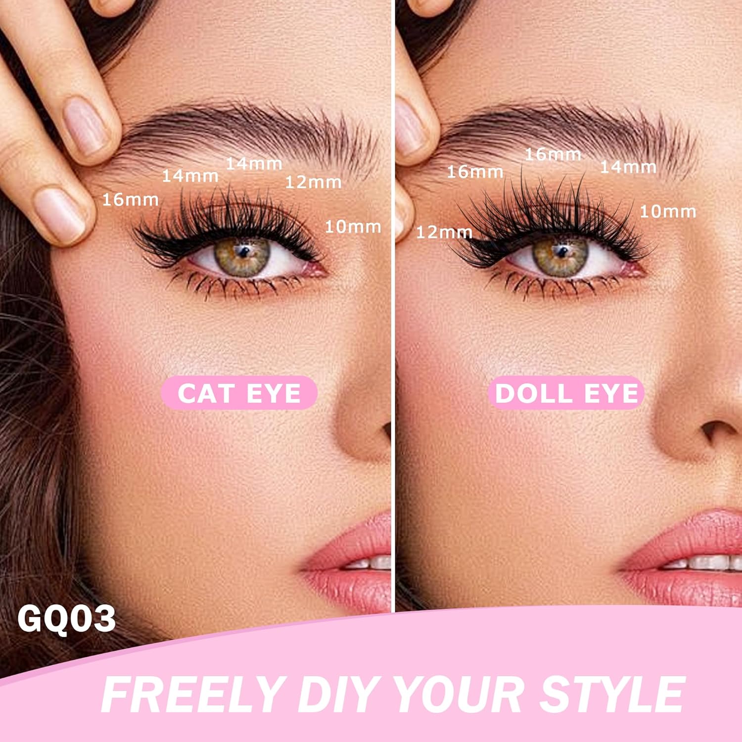 - 【DIY Eyelash Extensions】With 10-12-14-16mm mixed length cluster lashes, you can DIY your unique style like cat-eye, doll-eye, natural look, and bold look.