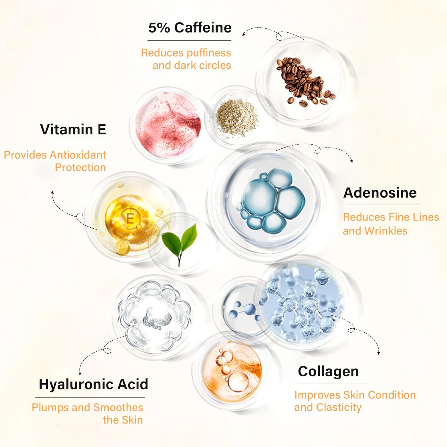 - Gentle on Skin yet Effective: Suitable for All Skin Types: Our eye serum is suitable for all skin types, including sensitive skin. It is from Safely selected materials, making it safe and gentle to use., but if you're sensitive to caffeine, consult a dermatologist before use.