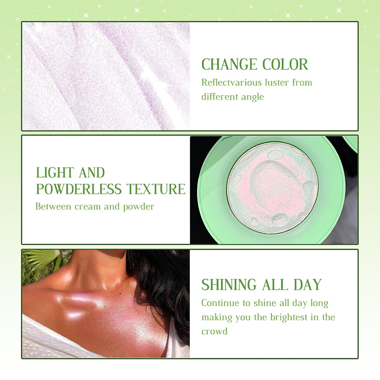 - 【Silky-Soft Texture】 The shiny highlighter palette has a texture between cream and powder that slides effortlessly and blends seamlessly with your skin. Ultrafine no granular feeling, strong color rendering, soft and smooth, accompanied by chameleon-like light appears and shiny on the beautiful skin.