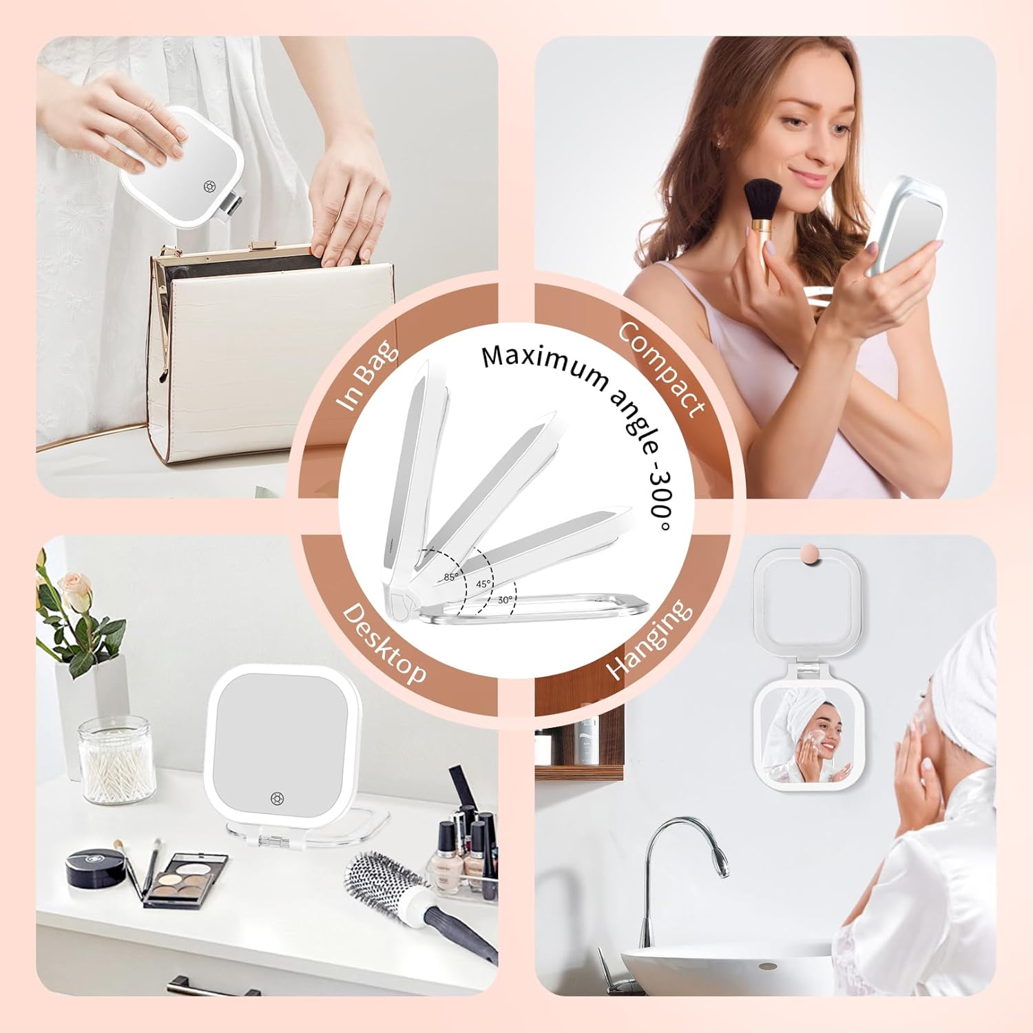 - 【Perfect Gift for Women】The travel vanity mirror with lights can be an ideal gift for mom, girlfriend, wife, husband, etc. on Valentine's Day, Mother's Day, Christmas, New Year and other special holidays. From now on, say goodbye to wrong lighting and imperfect makeup! Note: Keep the mirror 4.5 inches away from your face.