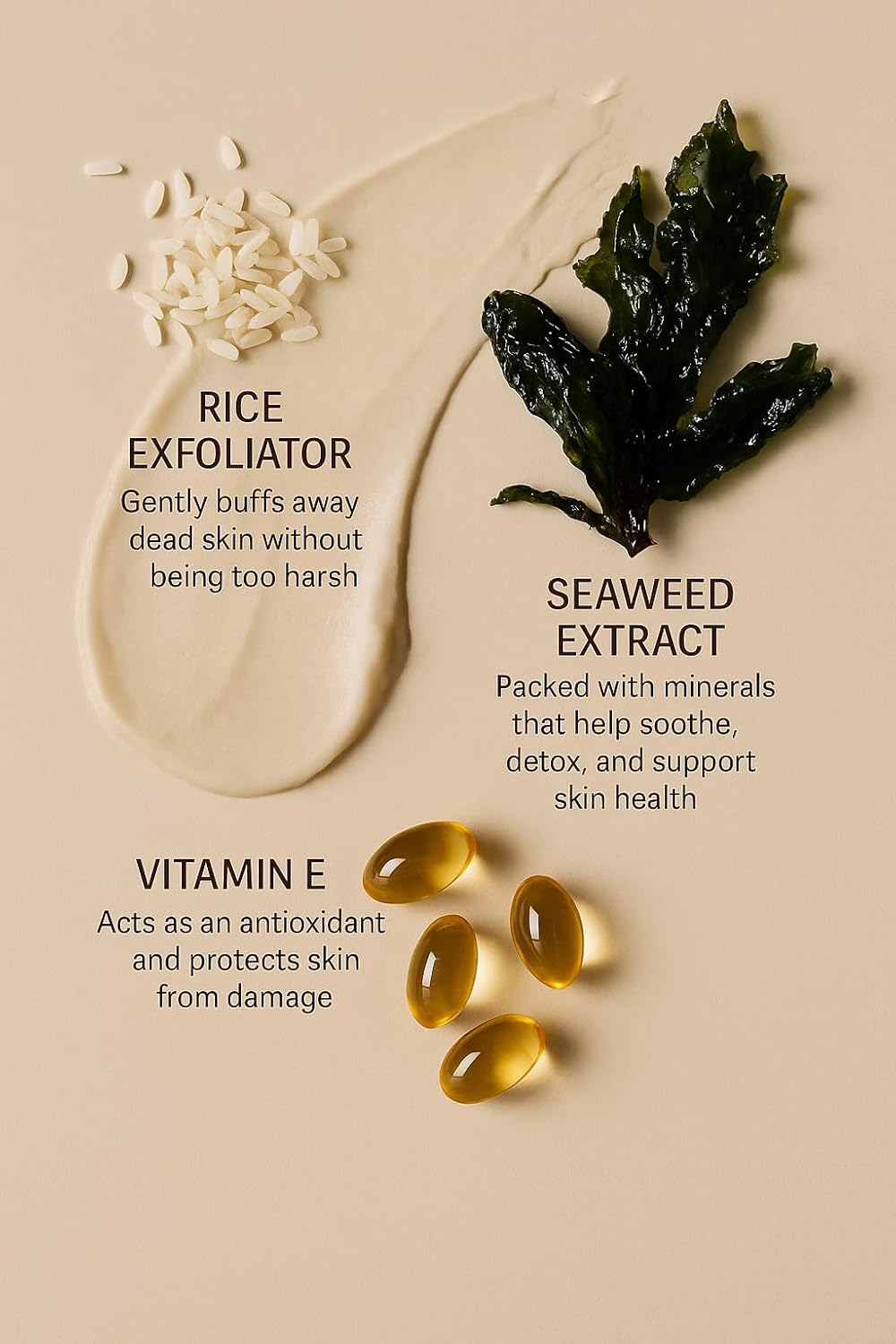 - Lymphatic Drainage Support: The gentle exfoliation provided by the rice grains can help stimulate your skin’s lymphatic system, encouraging natural drainage to reduce puffiness and improve circulation.