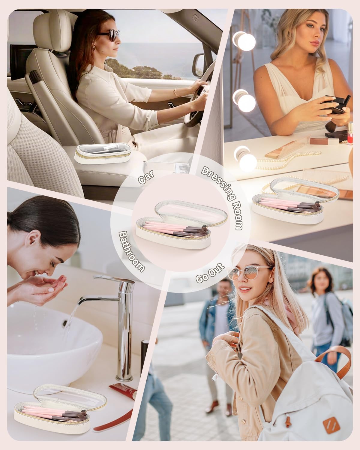 Clear Travel Makeup Brush Holder, Leather Makeup Brush Toiletry Bag, Portable Cosmetic Brush Case, Transparent Waterproof Makeup Brush Storage Bag, White, Large