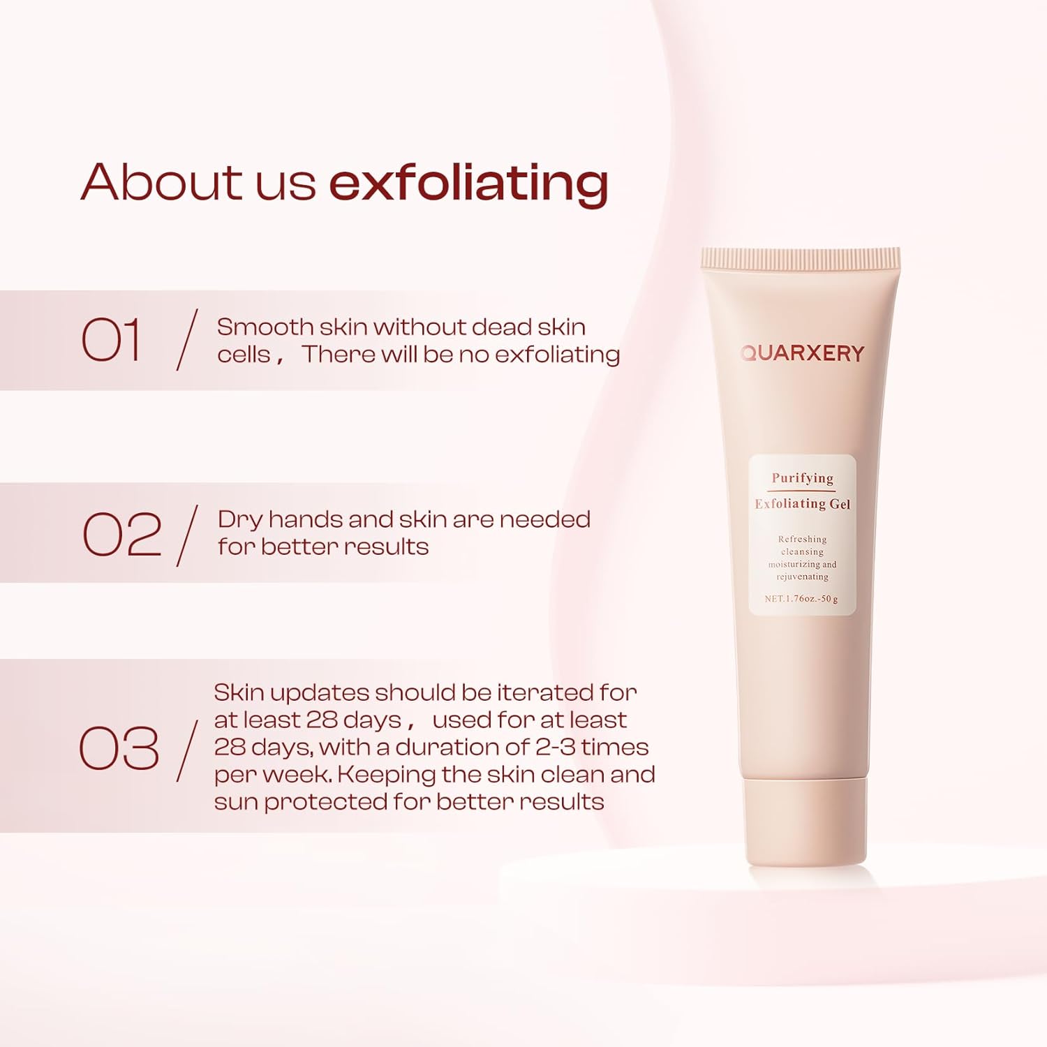 - Moisturize the Skin: Purifying exfoliating gel moisturizes and nourishes the skin, Rgulates the water and oil balance of the skin, shrinks pores, and restores smoothness and softness to the skin even in dry weather