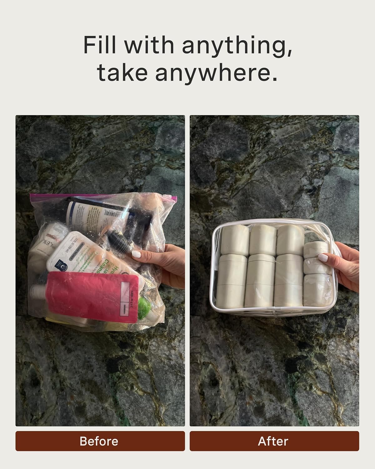 - PATENTED MAGNETIC DESIGN - Designed for seamless storage, our travel capsules feature a magnetic design that connects each container vertically or horizontally. They include magnetic labels that seamlessly swap between The Flex Small, The Flex Medium, and The Flex Large Capsules.