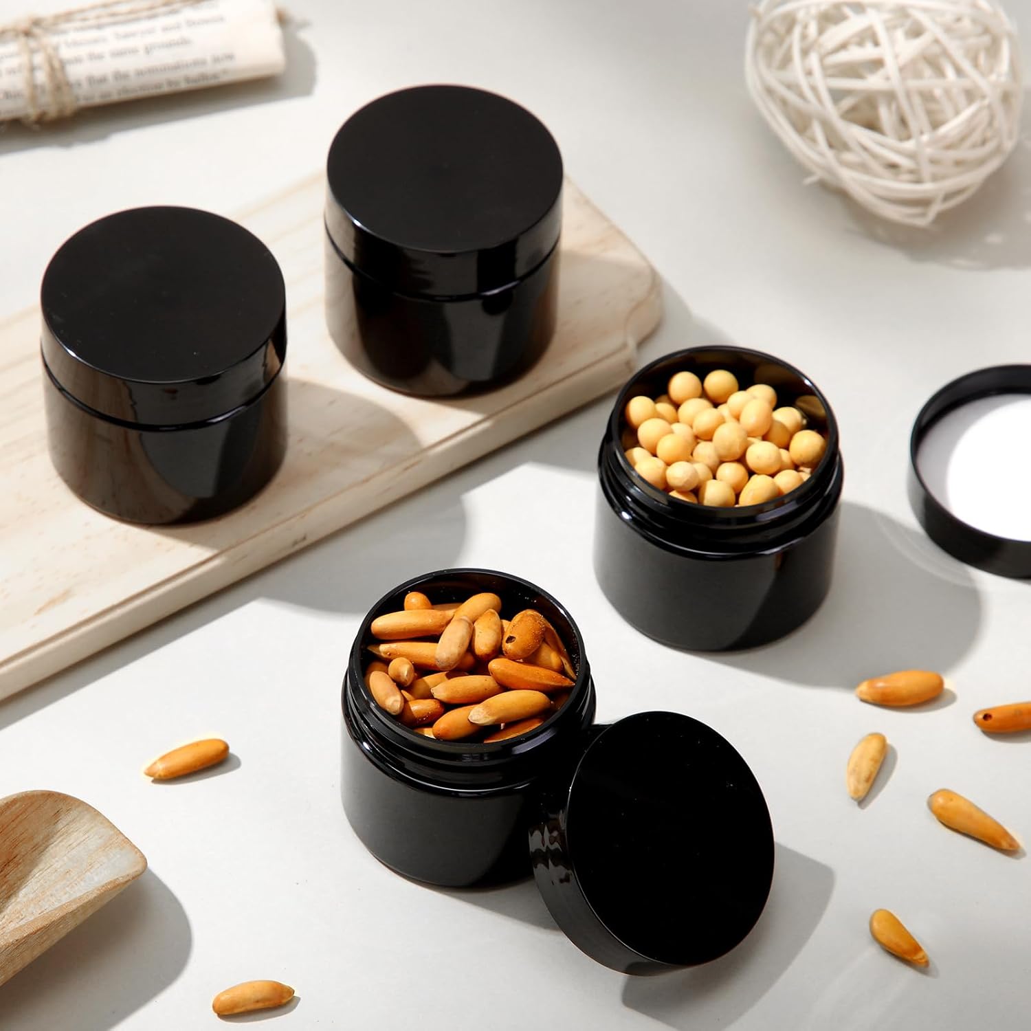 - What You Receive: there are 4 pieces plastic jars with black screw-on lids; They are durable and refillable, measuring about 5.2 cm/ 2.05 inches in diameter, 4.3 cm/ 1.7 inches in height