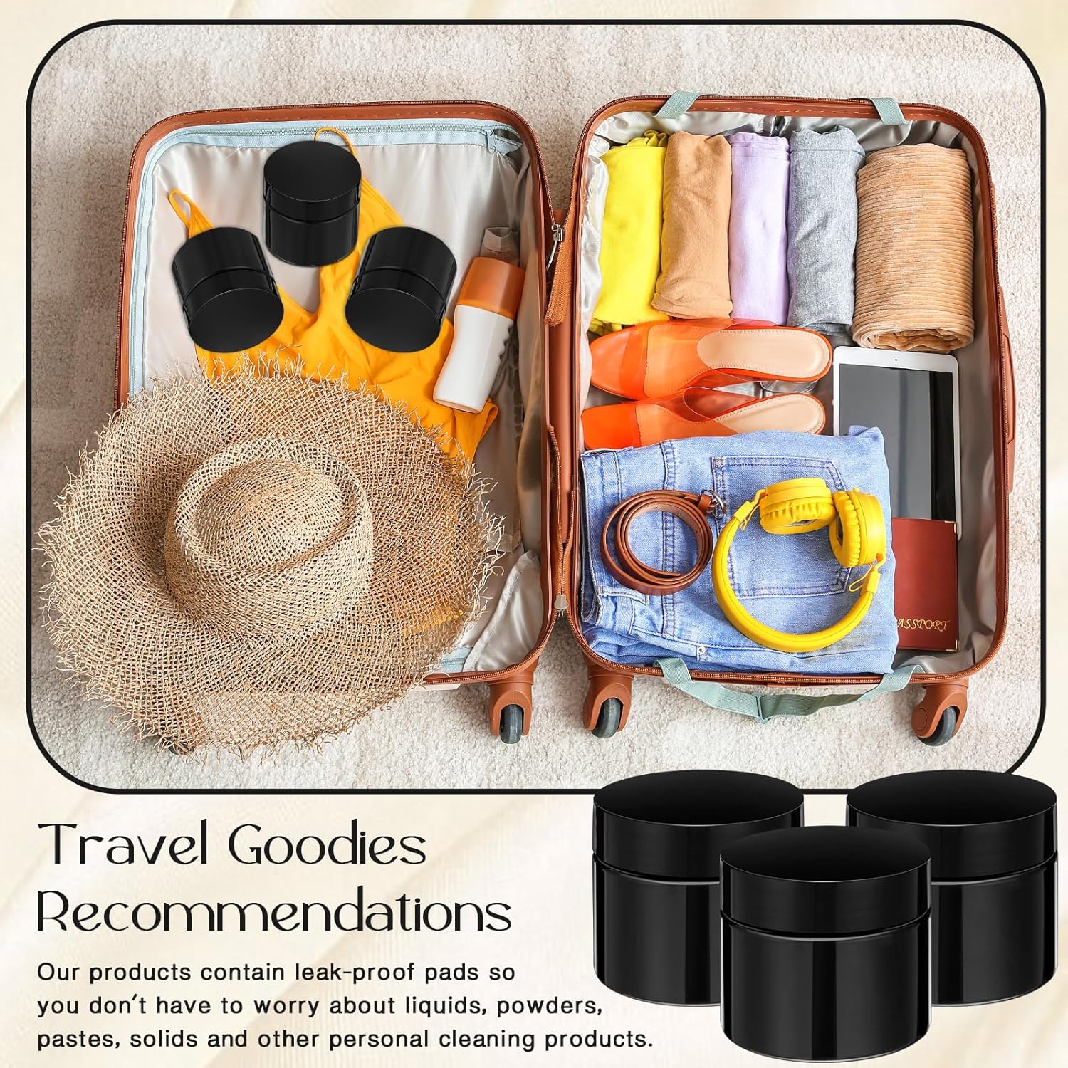 - Easy to use: the black travel containers are straight-sided and round with wide mouth and thick walls, easy to fill and refill, durable and resistant to impact