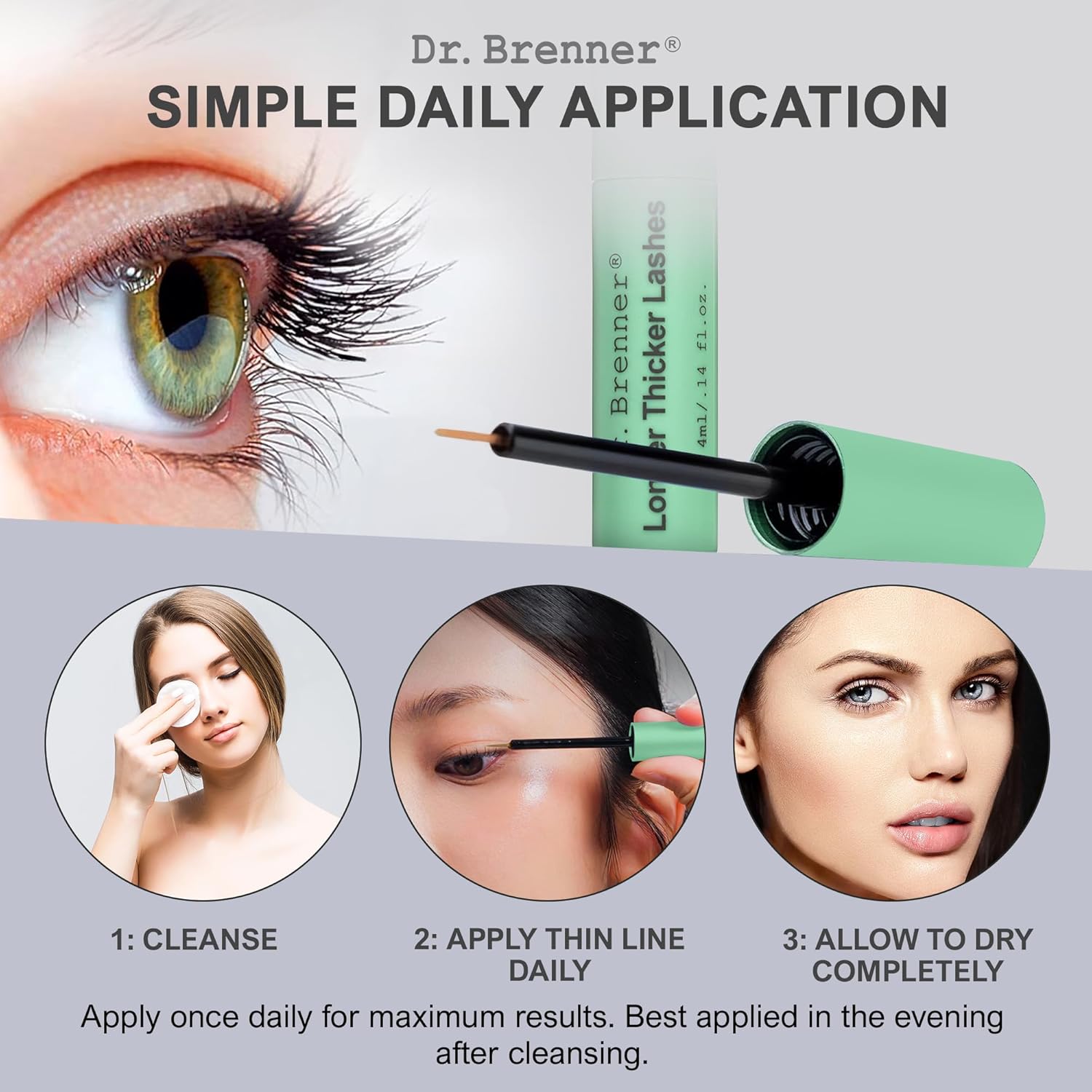 - GENTLE AND SAFE FOR DAILY USE: Hypoallergenic and ophthalmologist-tested, Dr. Brenner's eyelash serum is specifically formulated to be gentle enough for daily use, even for those with sensitive eyes. Experience lash enhancement without irritation, redness, or discomfort.
