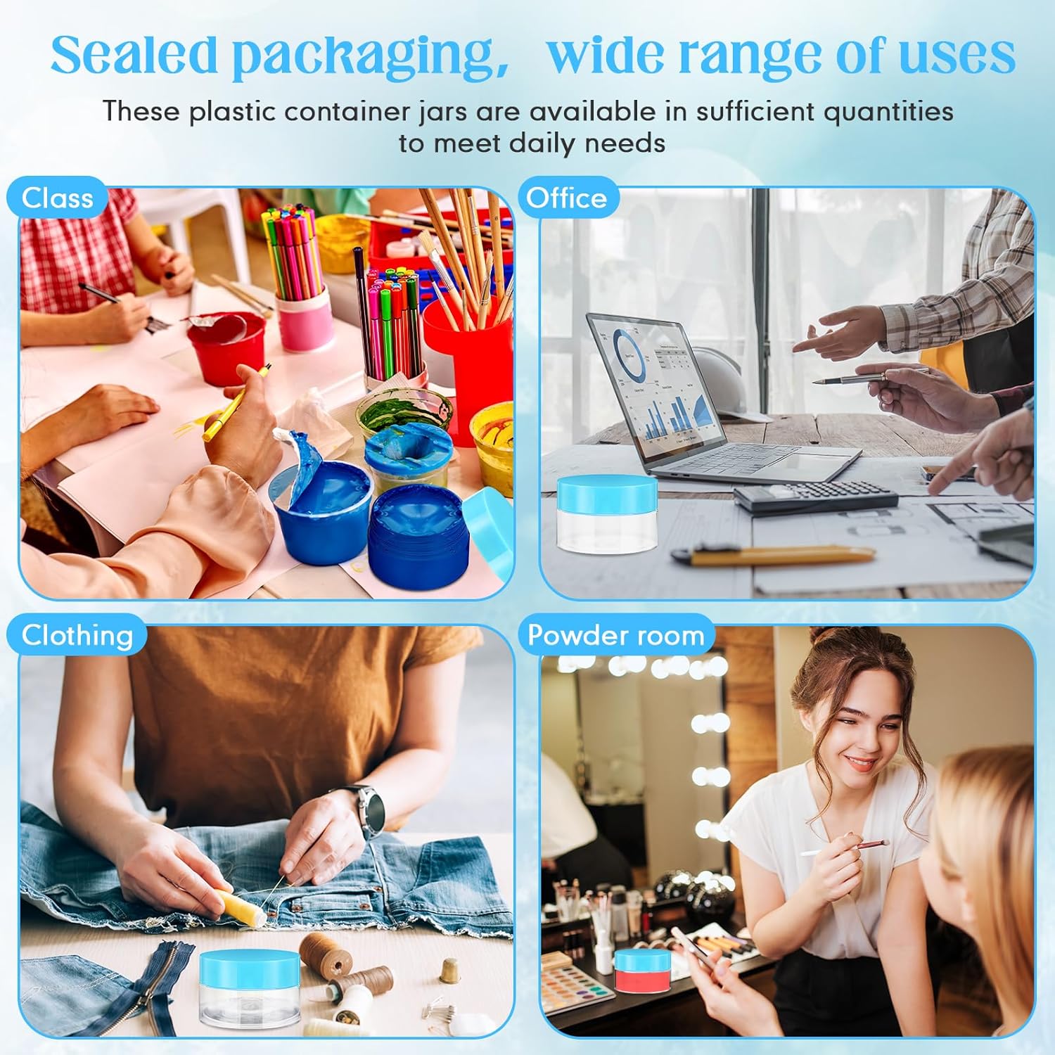 SATINIOR 100 Pcs Plastic Jars with Lids Small Containers Lids Wide Mouth Small Plastic Containers for Lotion Cream Rhinestones Body Butters Travel Storage(1 oz,Blue)