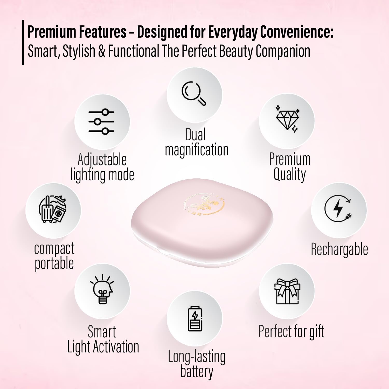 - [Ultra-Portable & Stylish] – Slim, lightweight, and just 4 inches, this pocket mirror easily fits into handbags, making it an ideal travel mirror with light for beauty touch-ups anytime, anywhere..