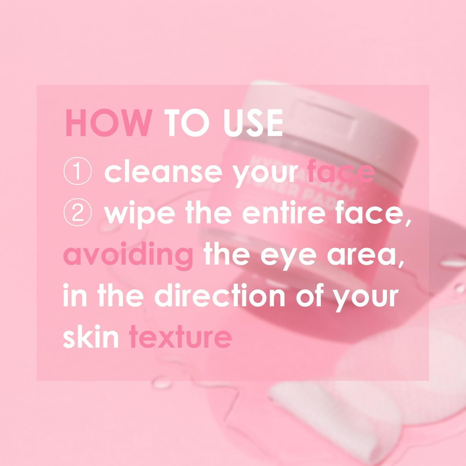 - HOW TO USE: After cleansing, take one pad and gently wipe across your face, avoiding the eye area. Then use the embossed side for mild exfoliation and the soft side for hydration. Lightly pat your skin to enhance absorption before continuing with your skincare routine.