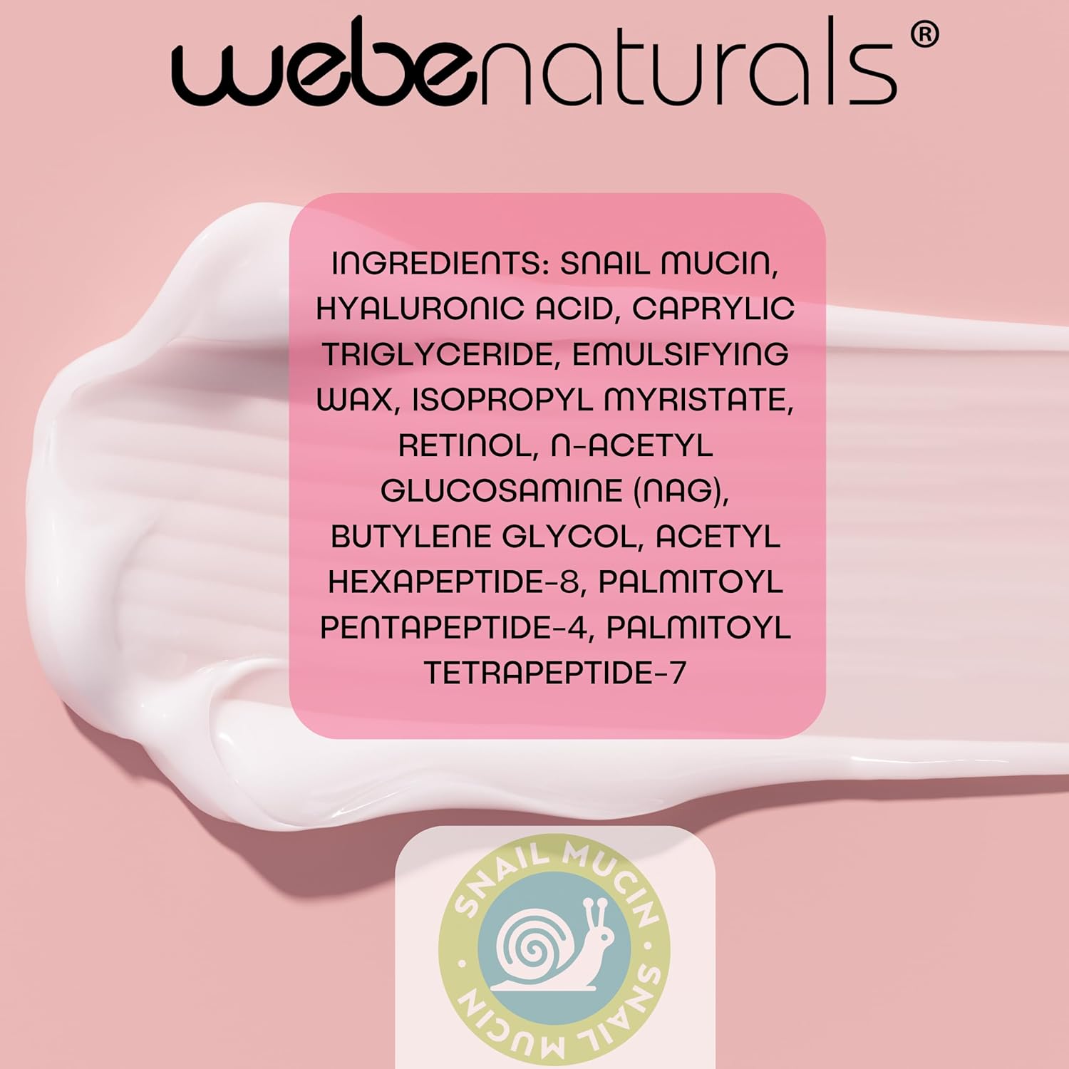 WEBE Hydration Snail Mucin Moisturizer – Hydrating Face Cream with Hyaluronic Acid, Retinol & Peptides for Smoother, Youthful-Looking Skin