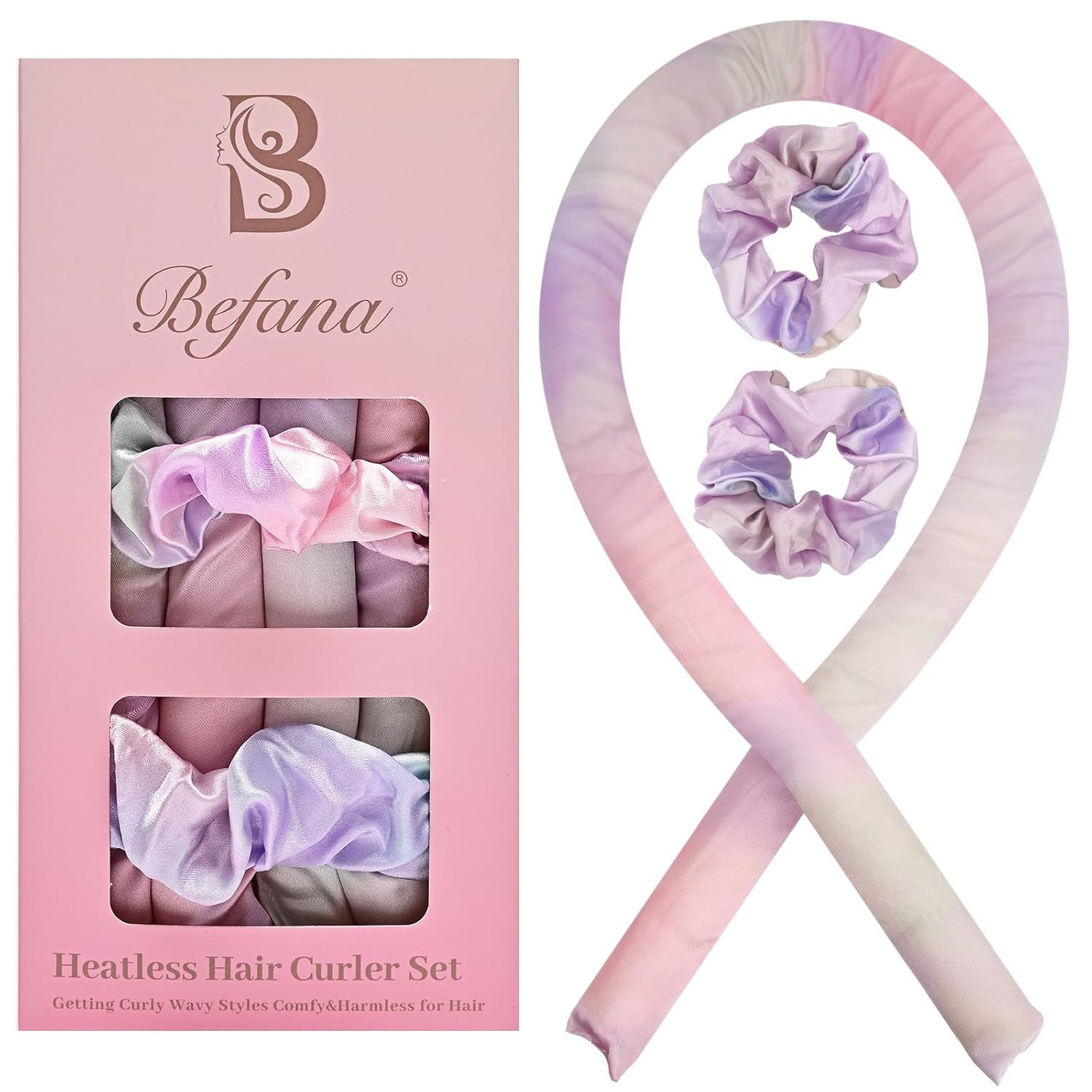 - This no-heat curling headband set includes a curling rod and two satin sleep scrunchies, all covered in high-quality satin fabric.
