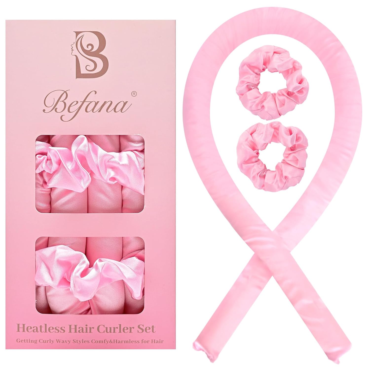 - This no-heat curling headband set includes a curling rod and two satin sleep scrunchies, all covered in high-quality satin fabric.
