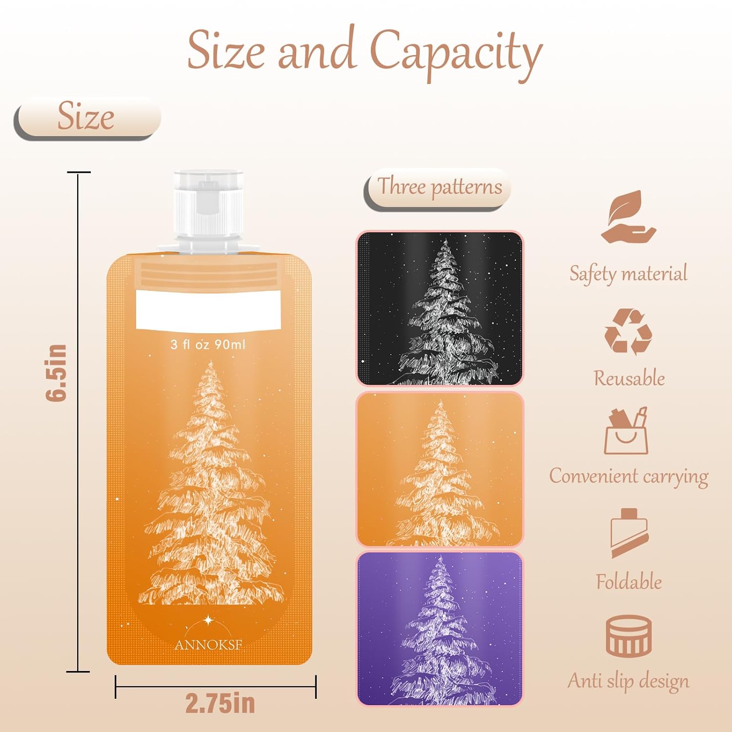 9 Pack Travel Pouches for Toiletries, Refillable squeeze Liquid travel pouches,Travel Shampoo and Conditioner Pouches,3oz leak proof travel pouches (Tree)