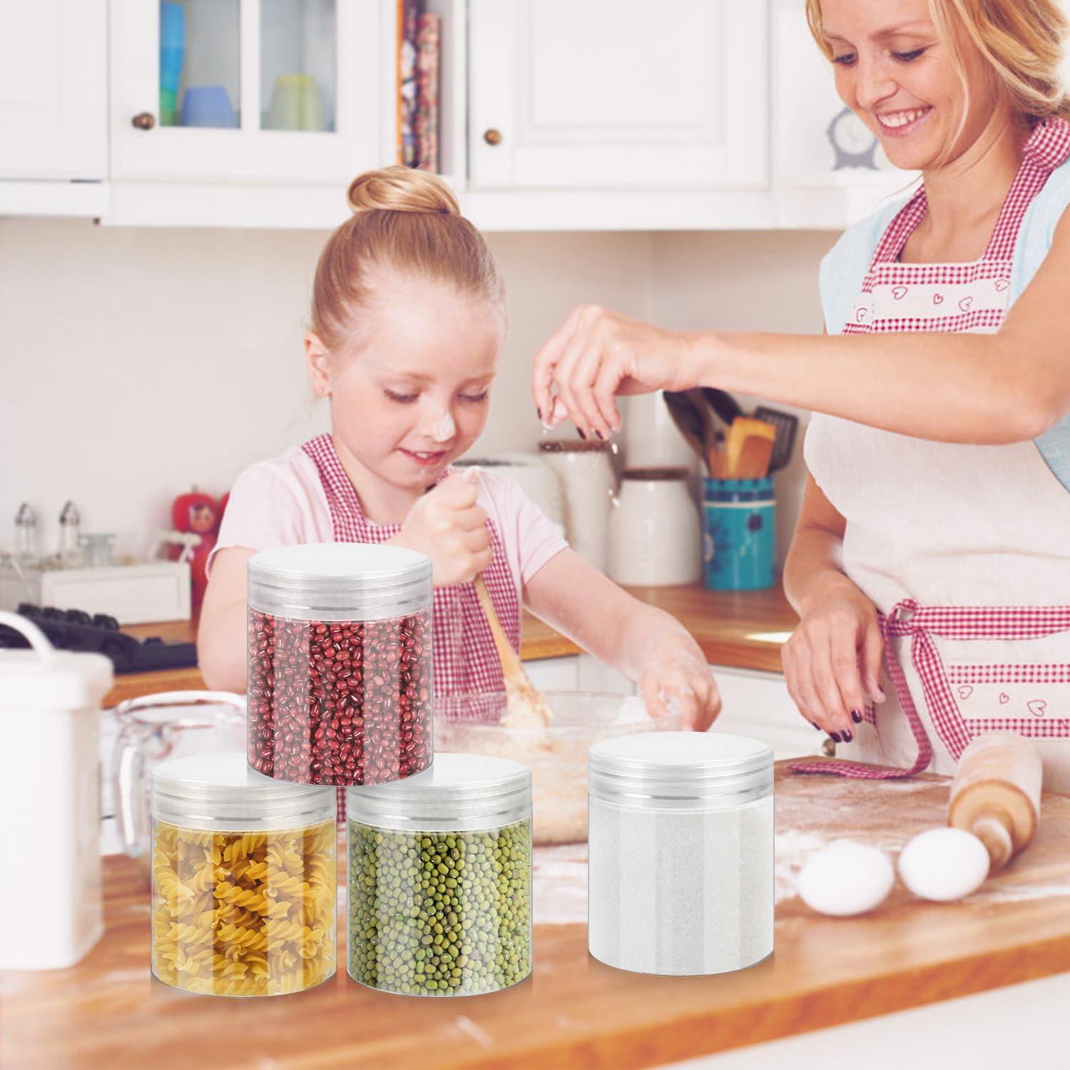 - Wide mouth vertical design: The wide mouth design is convenient for storing and taking out items, shallow mouth design is convenient for cleaning the bottom, PET material can be reused, but please avoid high temperature disinfection, and do not put it into the dishwasher.