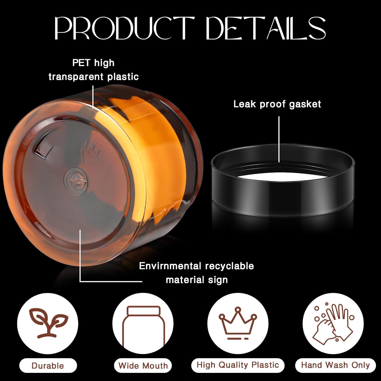 SATINIOR 100 Pcs Plastic Jars with Lids Small Containers Lids Wide Mouth Small Plastic Containers for Lotion Cream Rhinestones Body Butters Travel Storage(2 oz,Amber)