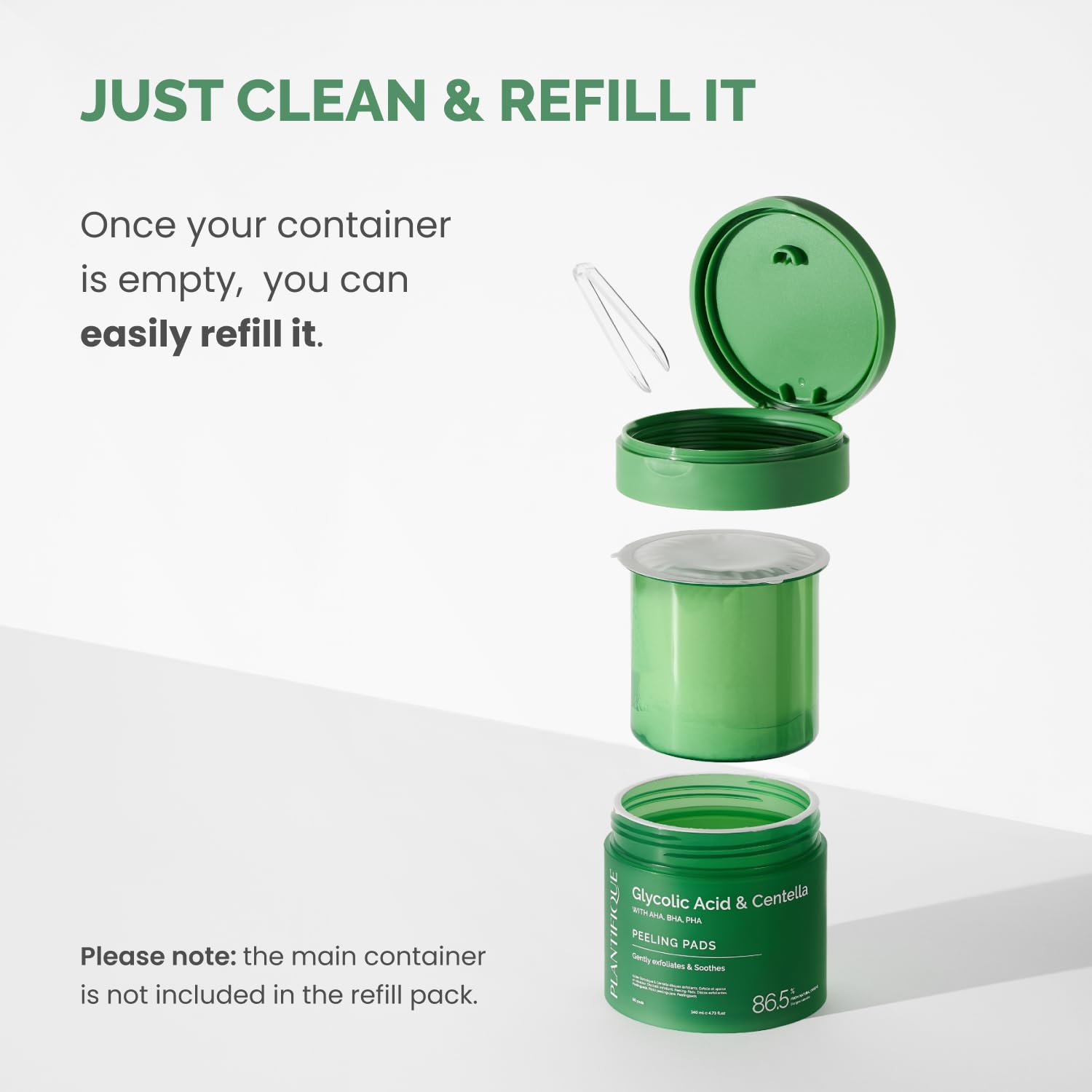 PLANTIFIQUE Only Refill Korean Glycolic Acid Toner Pads 60 Pcs with Niacinamide, CICA - AHA, BHA, PHA Daily Face Exfoliating Pads for Gentle Skin Renewal, Toner for Cleansing All Skin Types