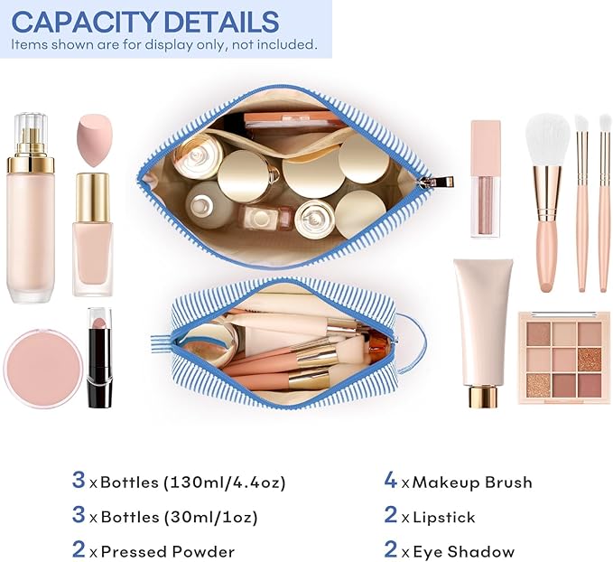 - Convenient and Roomy: Available in two compact sizes, 11.02" x 3.35" x 7.48" and 8.5" x 2.56" x 3.54", this cosmetic bag can hold all your makeup and skincare items based on their size. Slightly larger than the palm of your hand, it is easy to carry while ensuring durability and portability—making it not only a great travel gift for women but also perfect stocking stuffers for teen girls