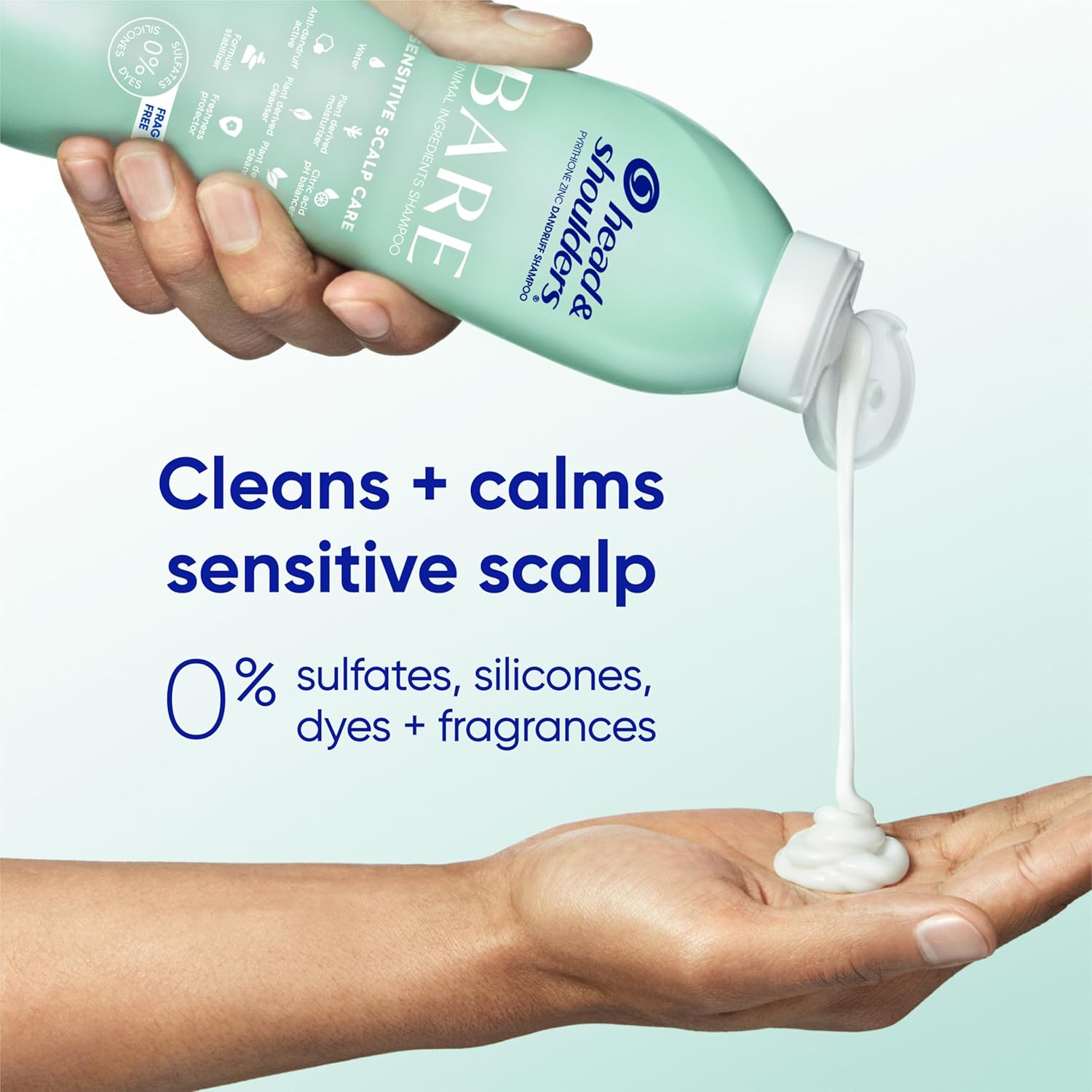 Head & Shoulders BARE Dandruff Shampoo Twin Pack, Fragrance-Free, Sensitive Scalp Care, Sulfate-Free, Silicone-Free, Dye-Free, Eco-Friendly Bottles, Safe for All Hair Types, 13.5 Fl Oz Each (Set of 2)