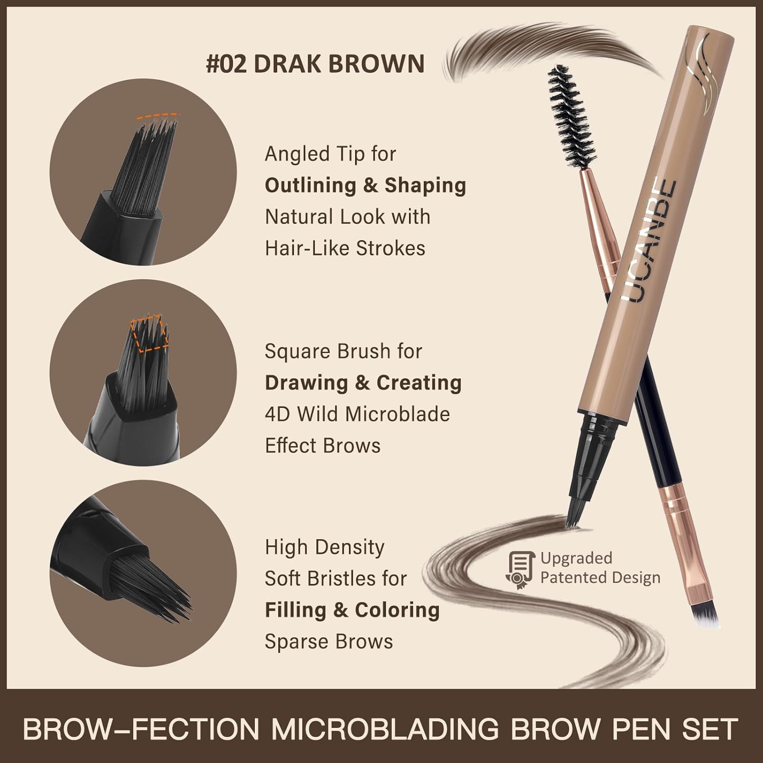 UCANBE Brow-Fection Angled Brush Eyebrow Pen, Liquid Microblading Eyebrow Pencils for Women, Wild Natural Brow Pen for Realistic Hair-Like Brows, Easy to Color, Waterproof, Lasts All Day, Dark Brown
