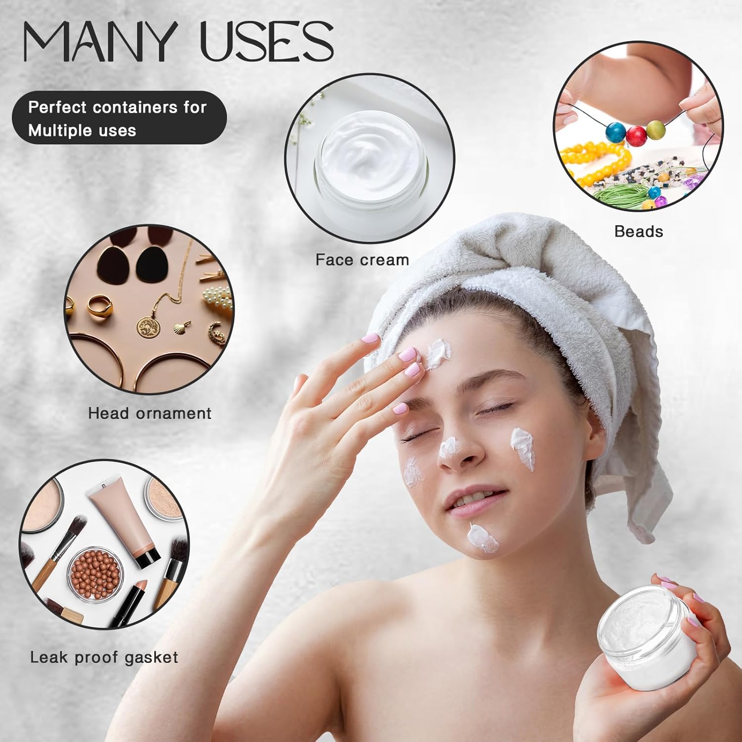 - Multifunctional Containers: you can use these plastic jar containers with lids to store your personal beauty products for travel, ideal to dispense; You can also use it to store homemade sugar scrub cream, body lotions, bath butter soap gifts, body butters and hair moisturizers, small and easily lost jewelry, small crafts like beads, seasonings, acrylic paints, flower seeds, rhinestones etc., which will keep your things organized and make your life more convenient