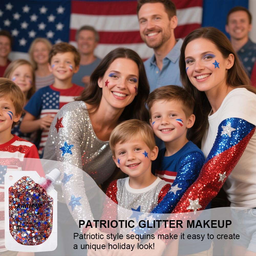 Holographic Face Glitter Gel Body Shimmer Makeup for for Hair, Face, Clavicle, Arm, Nail, Eyeshadow, Long Lasting Waterproof Mermaid Sequins Party Glitter for Rave Festival (USA Pride Body Glitter)
