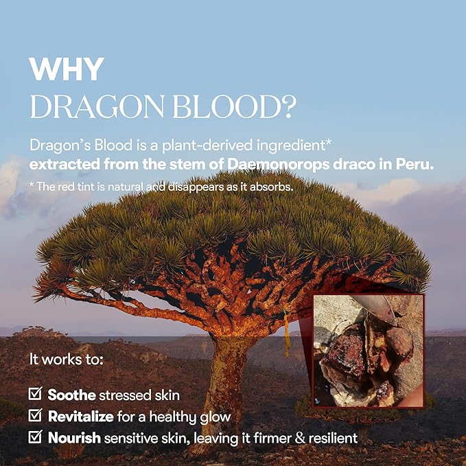 - [Barrier Repair with Dragon’s Blood] A botanical powerhouse known for its calming and antioxidant properties, Dragon’s Blood supports skin repair and reinforces resilience to help prevent signs of aging. Helps improve the look of weakened or sensitive skin over time.