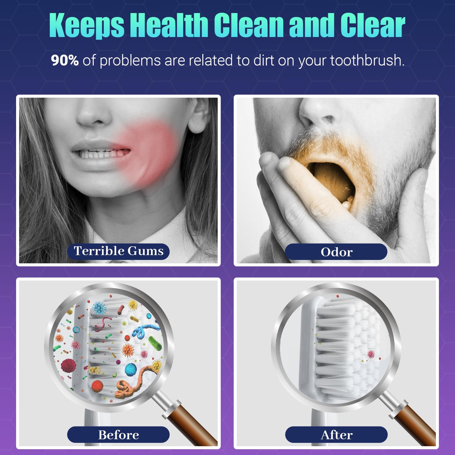 - 99.9% Effective Cleaning Of Your Toothbrush: MONESAO toothbrush covers are equipped with a powerful violet light that cleans your toothbrush deeply from multiple angles. Our toothbrush box keep you and your family's toothbrushes 99.9% clean