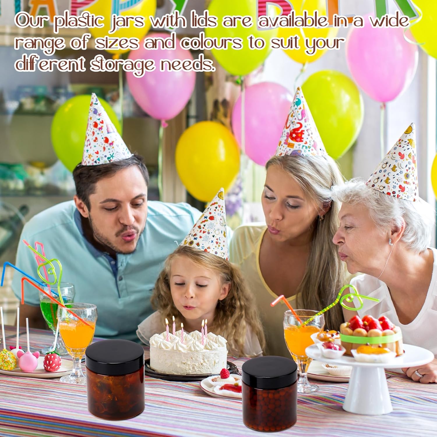 SATINIOR 100 Pcs Plastic Jars with Lids Small Containers Lids Wide Mouth Small Plastic Containers for Lotion Cream Rhinestones Body Butters Travel Storage(8 oz, Amber)