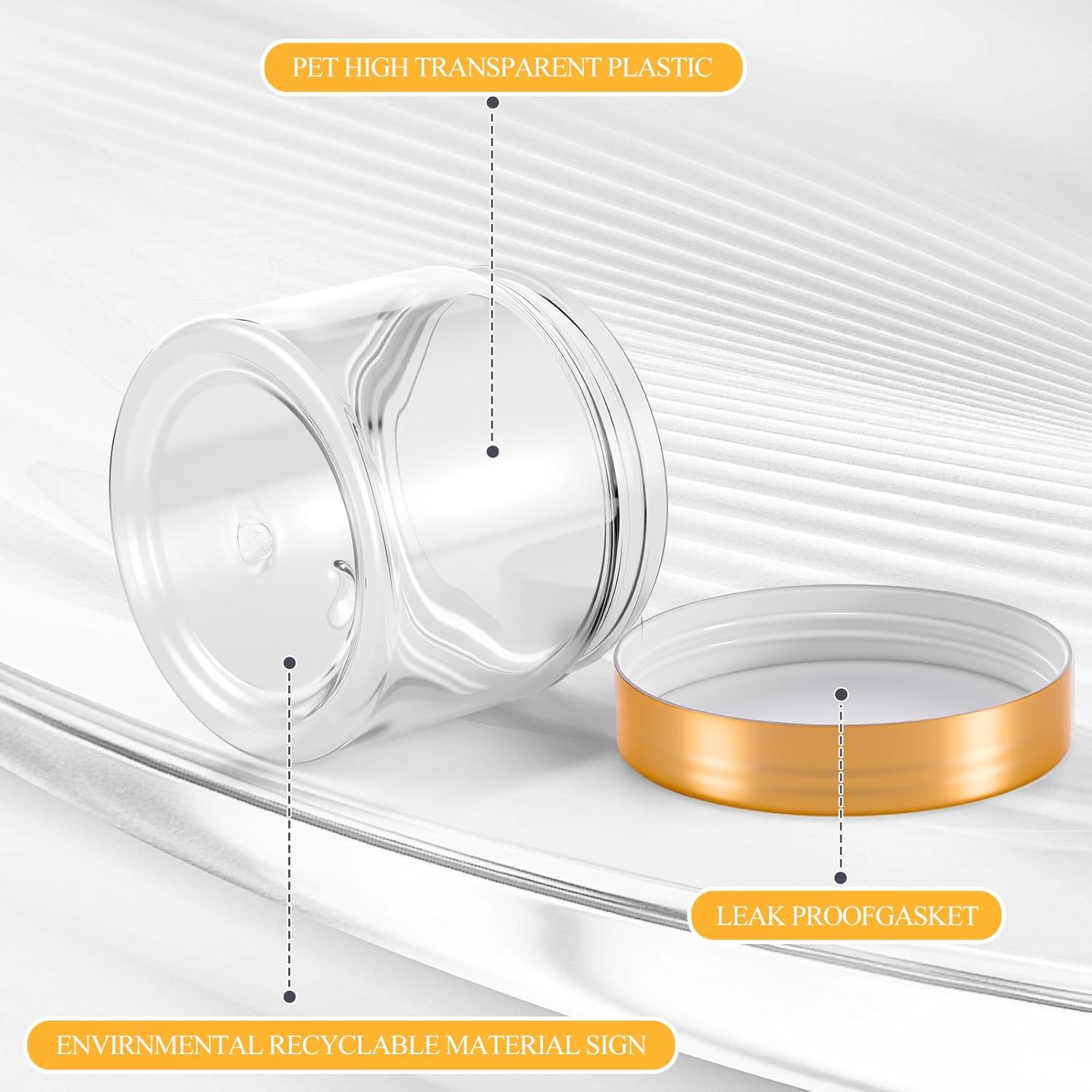 SATINIOR 36 Pieces 8 oz Plastic Jars with Lids Wide Mouth Airtight Reusable Container Acrylic Cosmetic Small Jars for Lotions Ointments Travel Toiletries Creams Make up Storage(Gold)