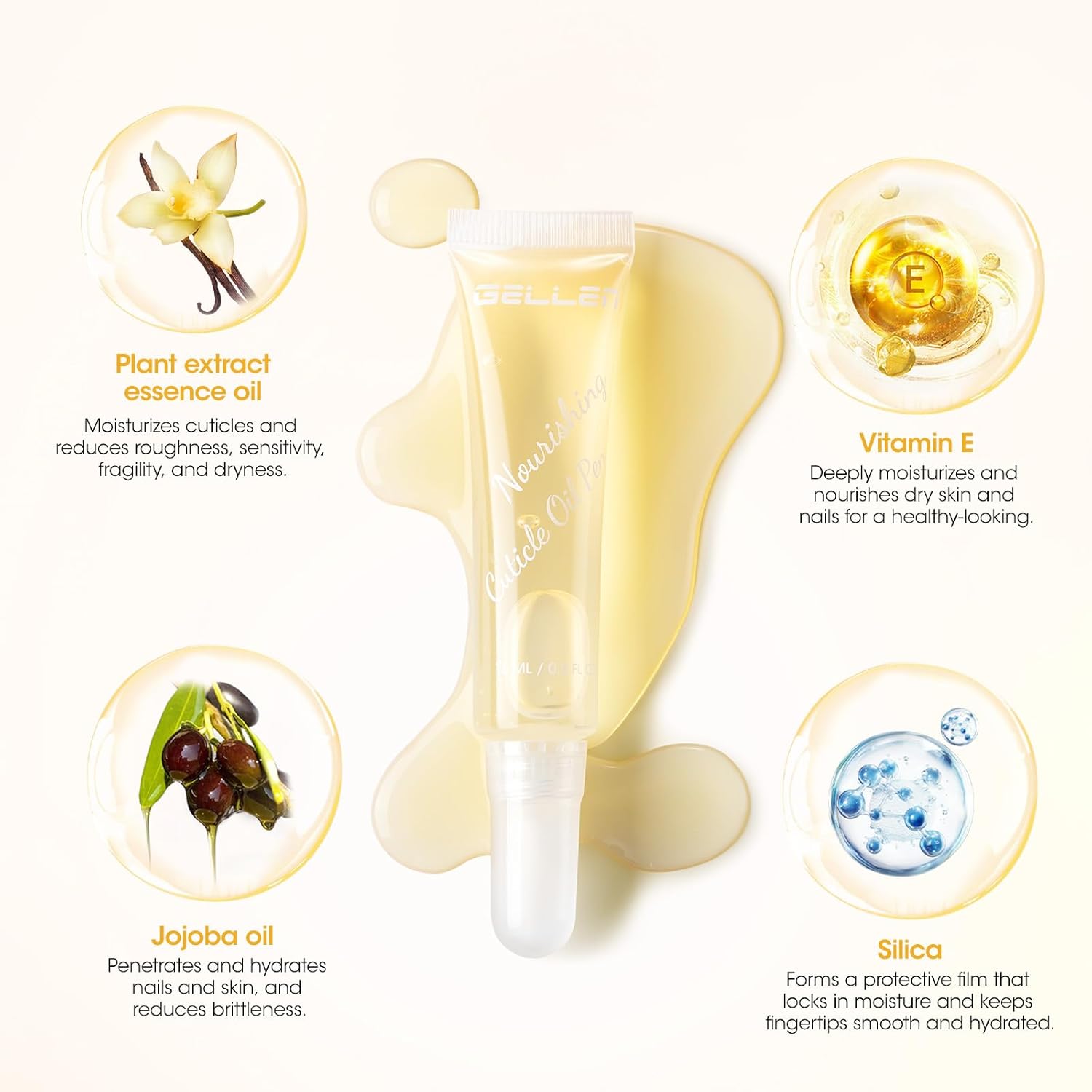 Gellen Cuticle Oil Pen for Nails, Vanilla Nourishing Nail Growth Oil, Jojoba & VE, Soften Cuticles Nails Strengthening, Leak-free Brush Applicator, Pro Nail Care for Brittle Dry Hands