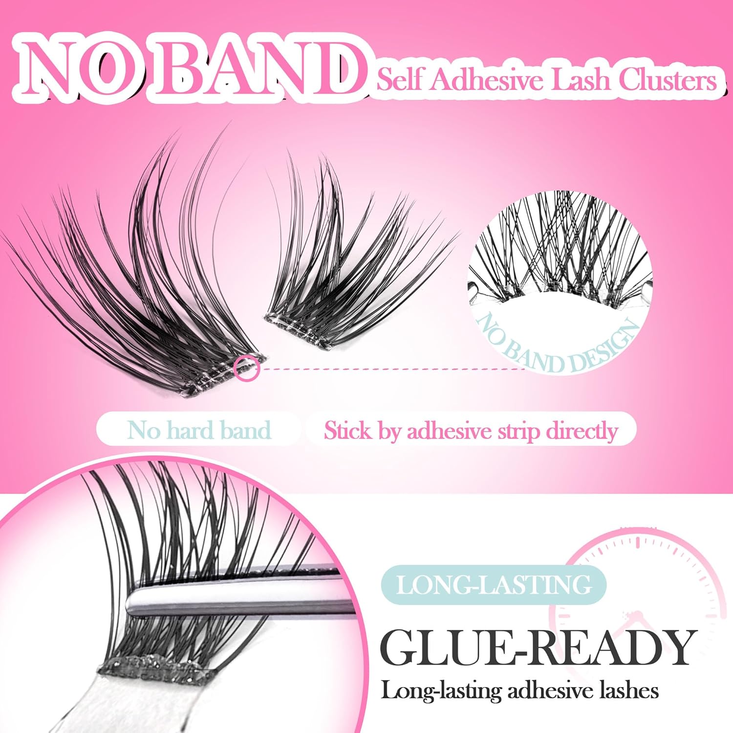 - Glue-ready: Say goodbye to messy glue tubes! Our glue free lash clusters come pre-coated with a clear adhesive band, ensuring instant application without the hassle.