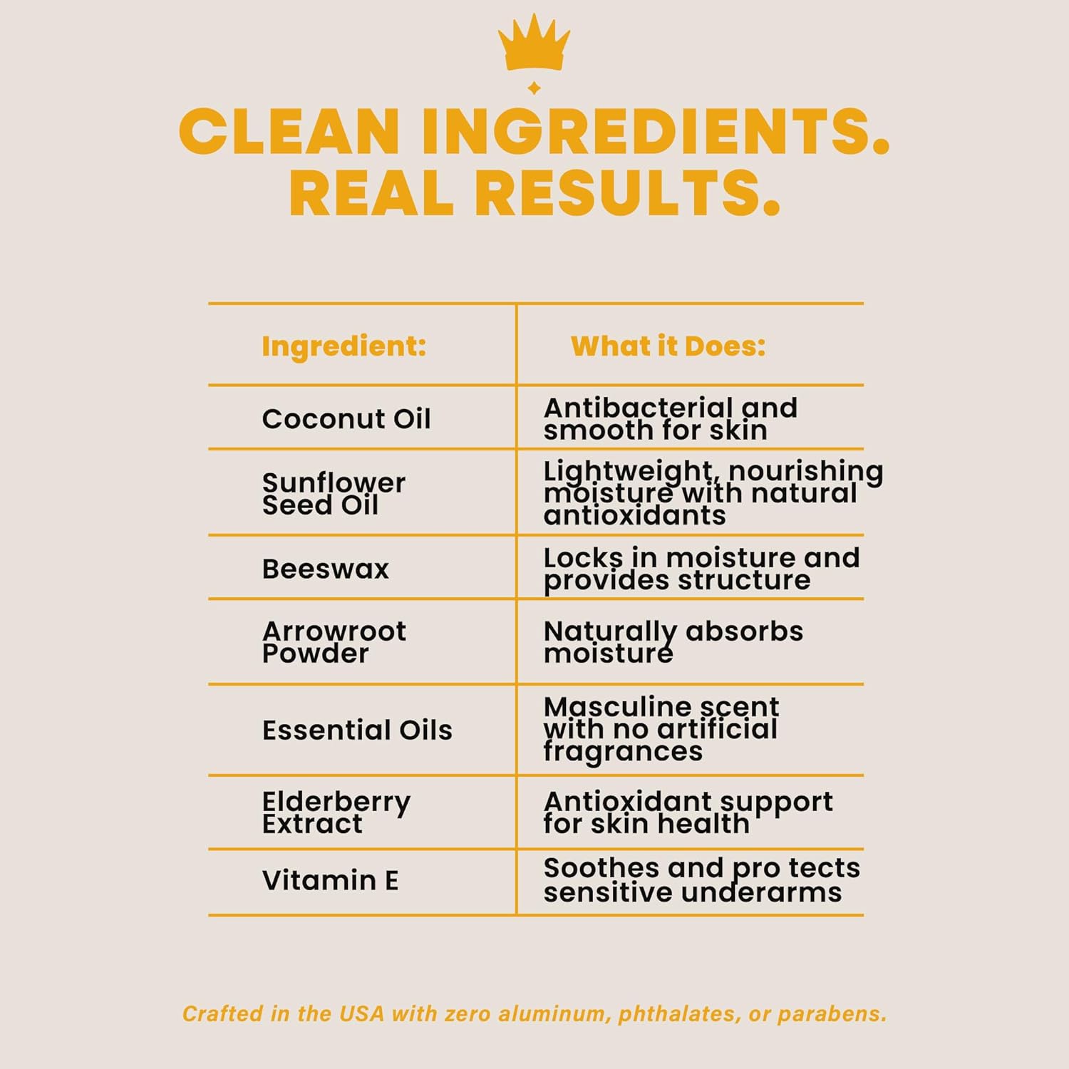 - SEVEN INGREDIENT FORMULA: Royal Guard's organic, non-toxic deodorant for men uses just 7 natural ingredients, offering a chemical free deodorant and a hypoallergenic solution for sensitive skin.