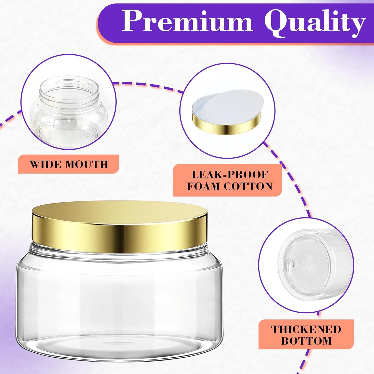- 【GOOD MATERIAL】- Our 8 ounce cosmetic jars are made of high grade transparent plastic, resistant to breaking. These plastic cosmetic containers with lids have complete sealed design, you do not need to worry about leakage, especially when you carry them in your bags.