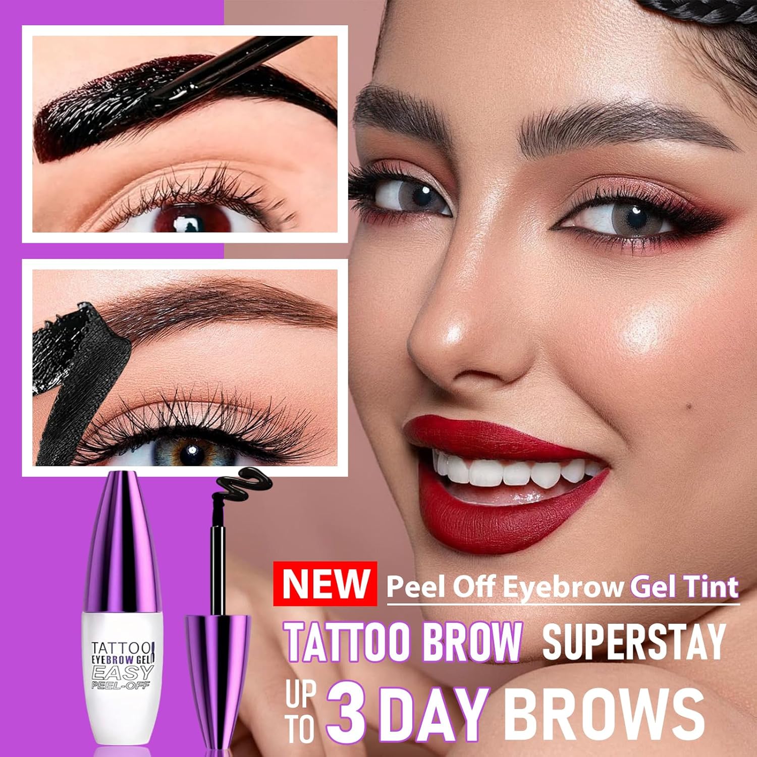 - 【3 Days of Gorgeous, No Fuss】Sparse or overplucked brows? This easy peel-off eyebrow gel leaves rich, natural tint that lasts up to 72 hours—no daily pencil touch-ups required. Wake up to defined, filled arches that look like you "woke up like this."