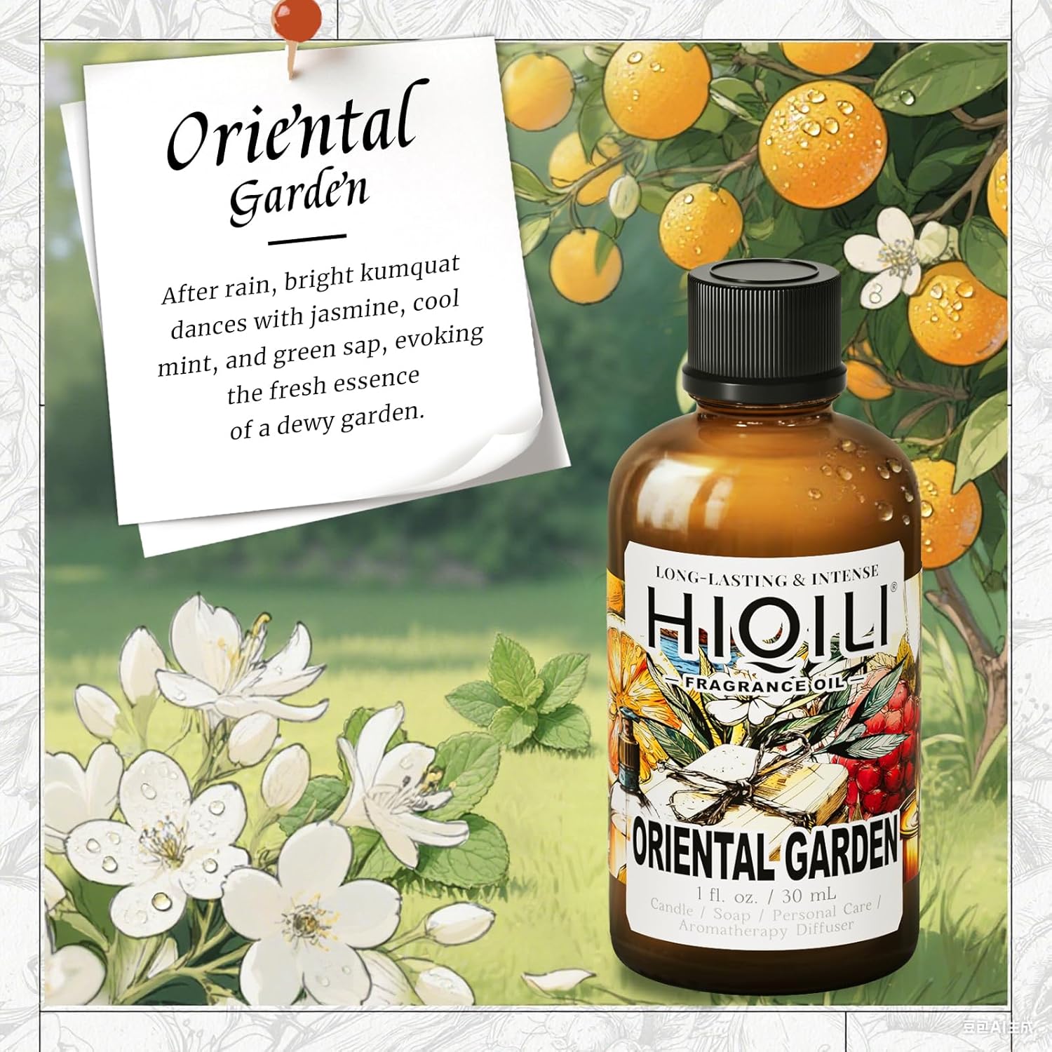 HIQILI Oriental Garden Fragrance Oil for Candle & Soap Making, Inspired by H.er-mes Le-Jrn deMonsr-Li, Luxury Hotel Scents for Essential Oil Diffuser, Aromatherapy - 1 Fl Oz