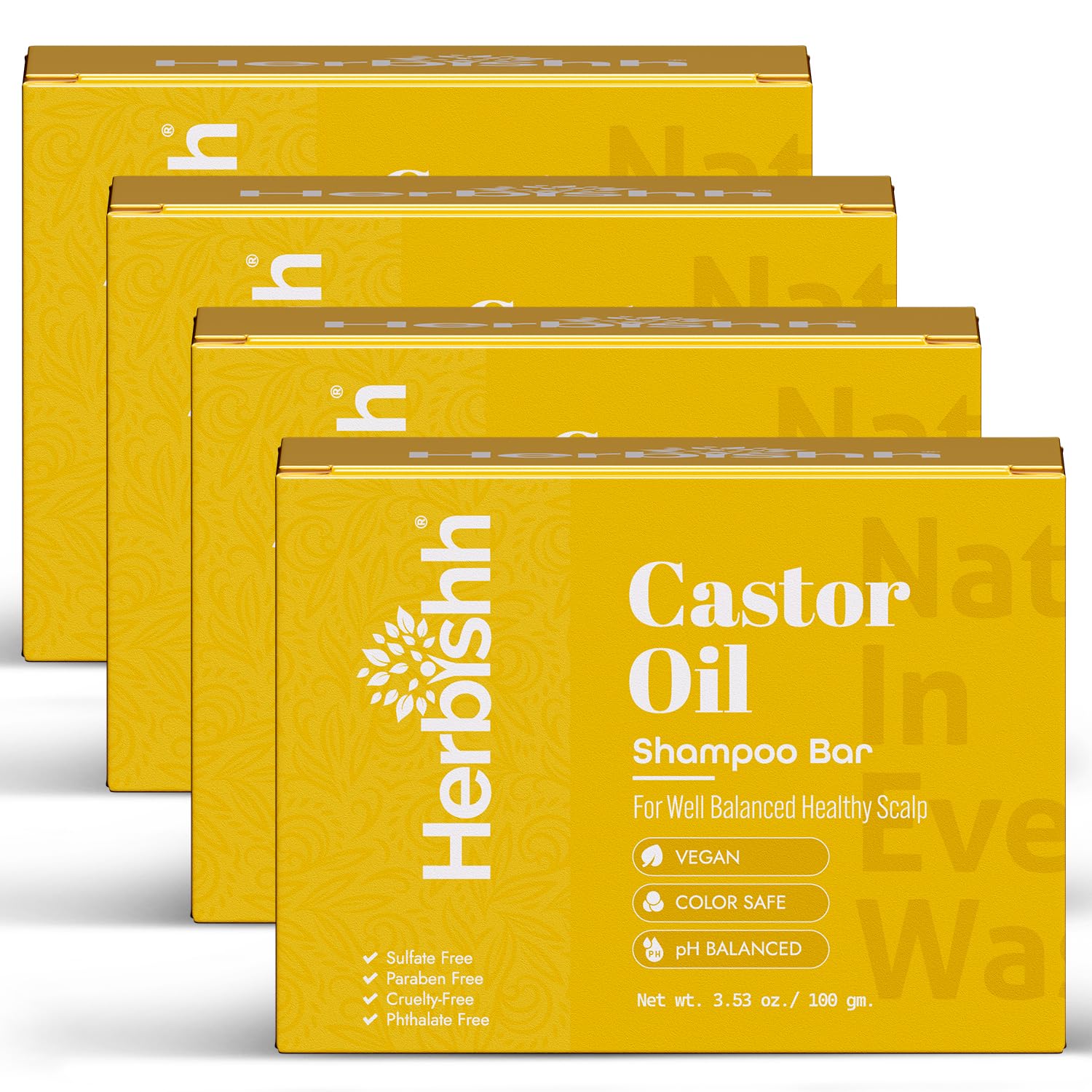 Herbishh Castor Oil Shampoo Bar – Nourishing Solid Shampoo Bar for Hair Growth & Thinning Hair – Castor Oil Shampoo Soap for Moisturized Scalp – Natural Soap 3.53 oz Pack of 4