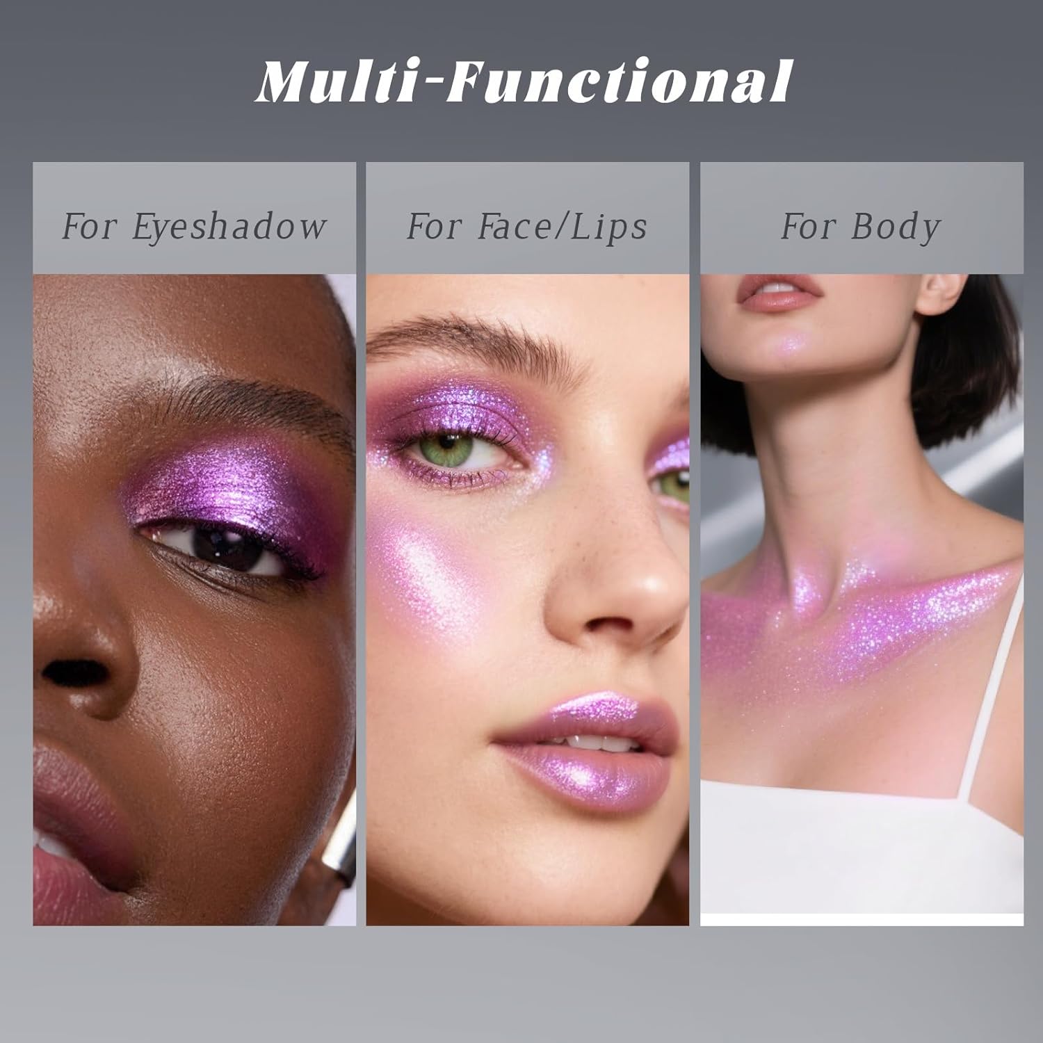Chameleon Purple Glitter Eyeshadow, Cream to Powder Shimmer Multichrome Single Eyeshadow, Sparkling Holographic Color Shifting Eye Brightener Highlighter Makeup Palette 04