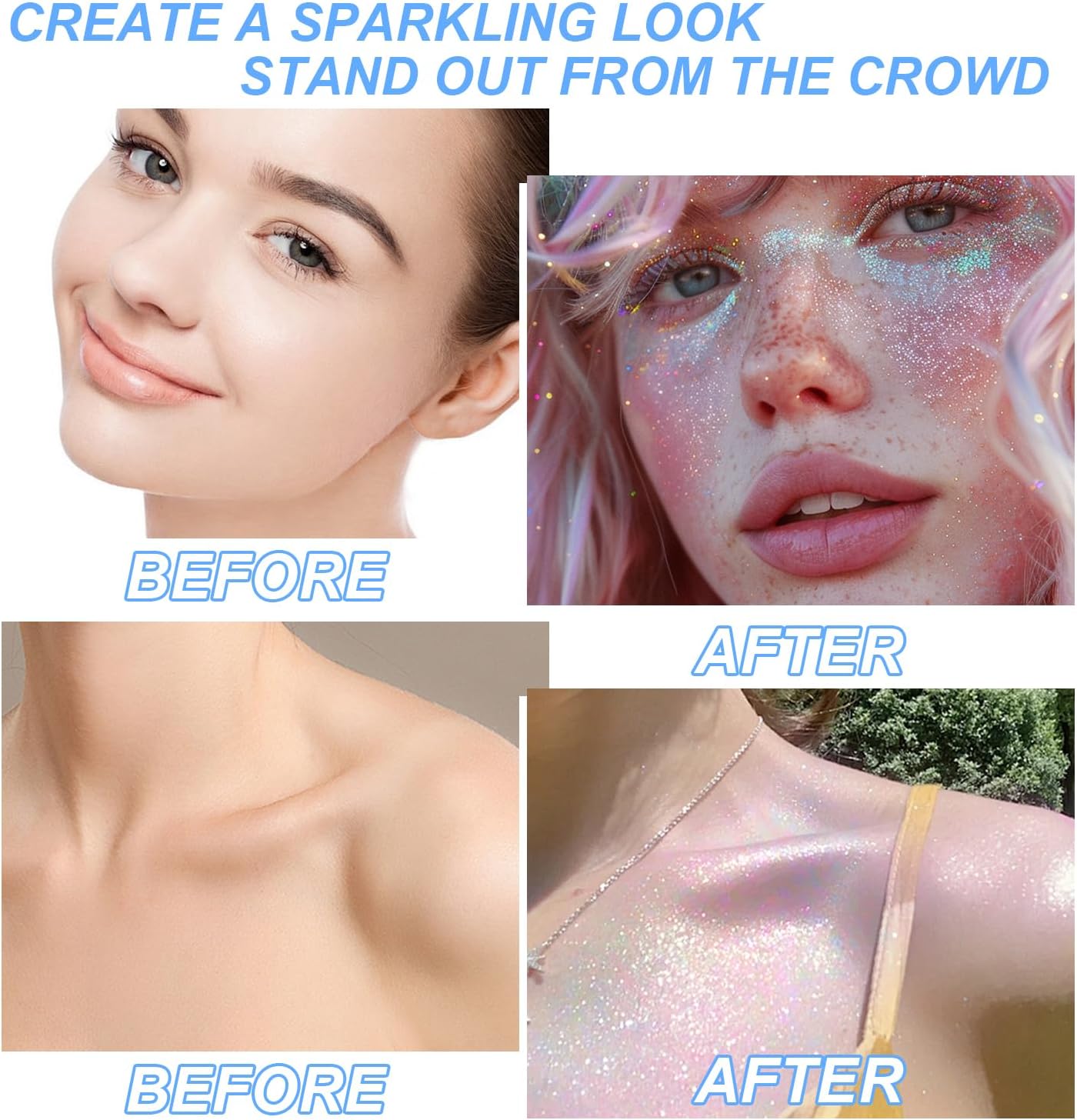 - Lightweight Hair Glitter Spray: Shake well before use, then lightly mist your hair and skin with our body glitter spray for a soft, shimmering glow that stays put. Compact and travel-friendly, this portable bottle lets you dazzle wherever you go—shine anytime, anywhere! Also, our hair glitter can be removed with water or soap.