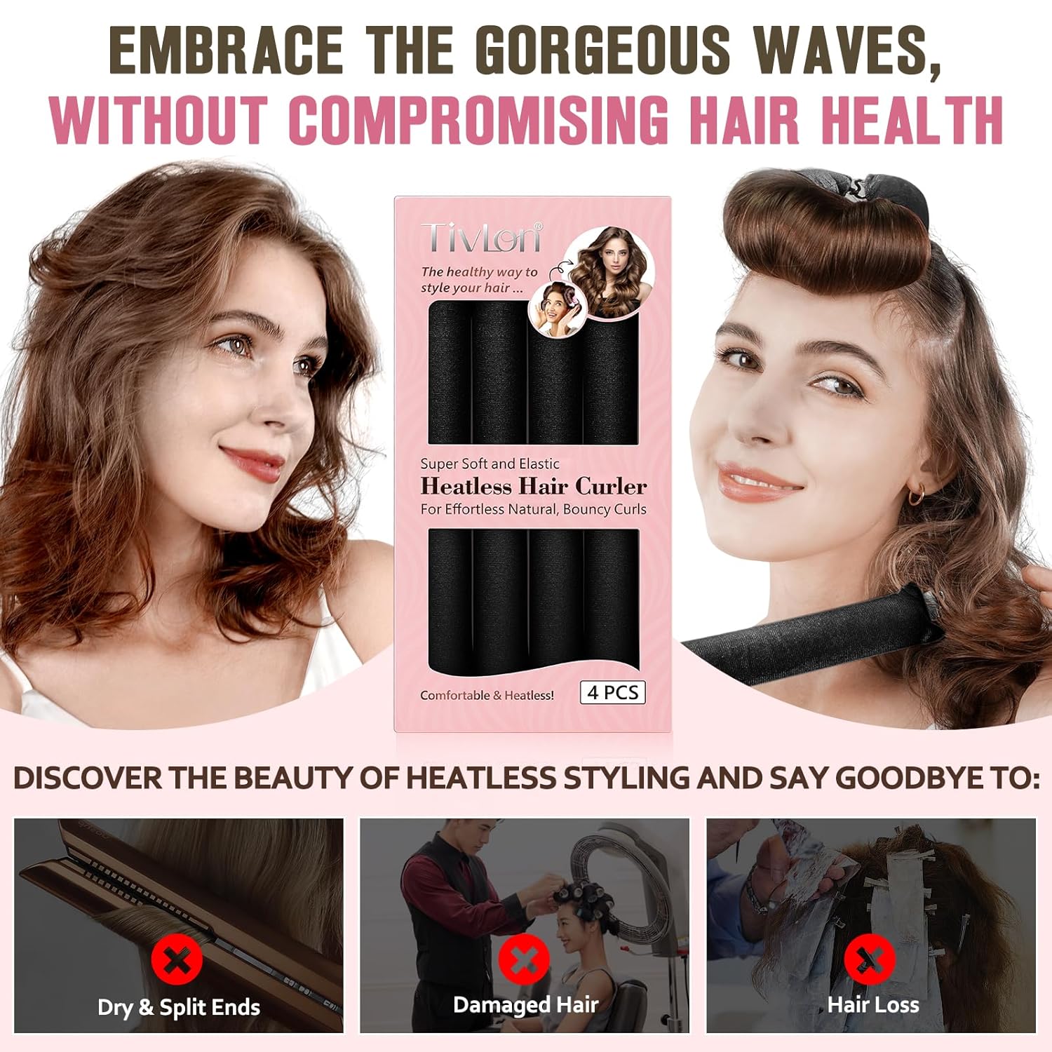 - 【No Heat Damage】: The heatless overnight curls require no heat, which means they won't cause heat damage to your hair and are safer than traditional curling irons!