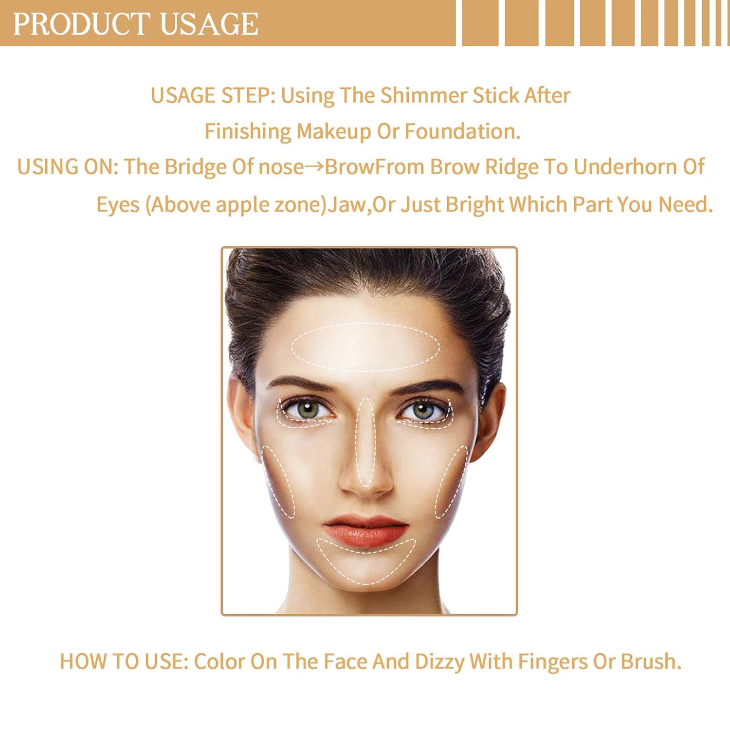 - Multi-Use Highlighter Makeup Stick: This is not only a glitter highlighter makeup stick for face contour improvement, but also can be used as blush and eye highlight to make your skin look moist, light and elegant. With just a highlighter stick, you can easily get your entire face and body makeup done.