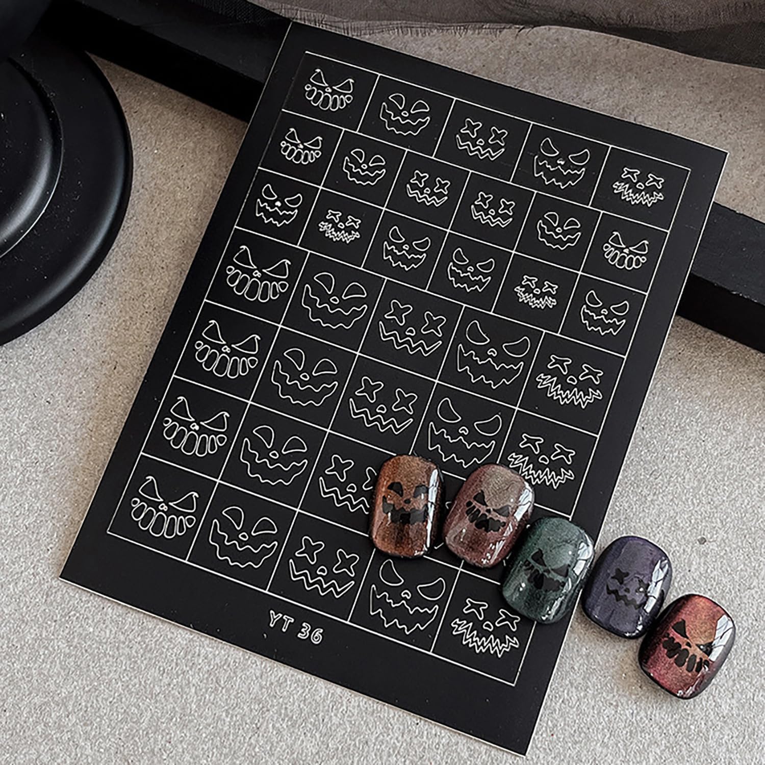 - Versatile Combination: Each sheet includes dozens of different patterns, allowing you to mix and match as you like—cover your entire nail with a ghostly ensemble, place a skull on the index finger as a focal point, or layer multiple designs for a 3D effect.